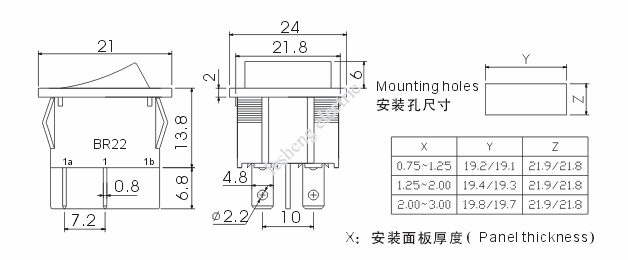 工作參數(shù) Contact Rating: 250VAC,6A,5A;125VAC,10A;12VDC;24VDC 接觸電阻 Contact Resistance: 35mΩ MAX 絕緣電阻 Insulation Resistance: 500VDC,50MΩ 耐壓強(qiáng)度 Dielectric Strength: 1250VAC,1MIN 工作溫度 Operating Temperature: T100 電器壽命 Electrical Life: 10000 Cycles |