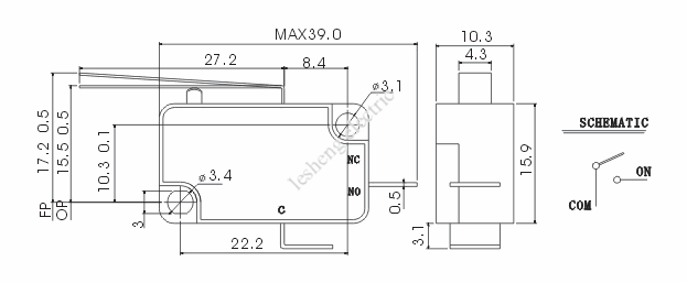 工作參數 Contact Rating: 250VAC/30VDC ,5.5A 接觸電阻 Contact Resistance: 50mΩ MAX 絕緣電阻 Insulation Resistance: 500VDC,100MΩ 耐壓強度 Dielectric Strength: 500VAC,1MIN 工作溫度 Operating Temperature: 10~60℃ 電器壽命 Electrical Life: 10000 Cycles |
