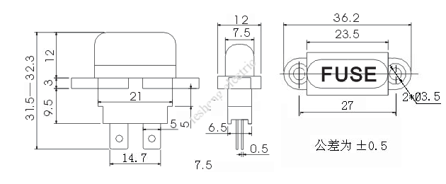 保險絲規(guī)格 額定電流 額定電壓 接觸電阻 絕緣電阻 耐壓
