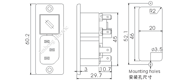 3. 保險(xiǎn)絲規(guī)格For fuses: Ø5×20,6.3A250V