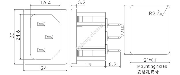 5. 裝配方式:插卡式,裝配板厚度0.8,1.0或1.2mm
