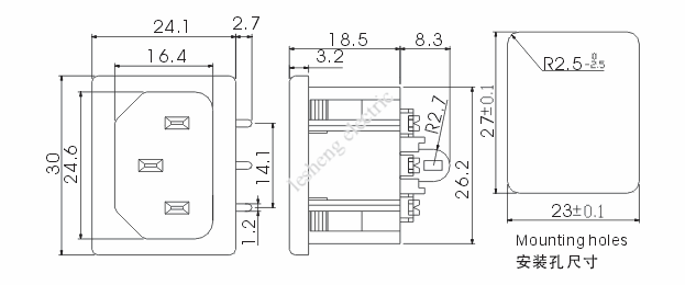 裝配方式:插卡式,裝配板厚度0.8,1.0或1.2mm,PCB安裝