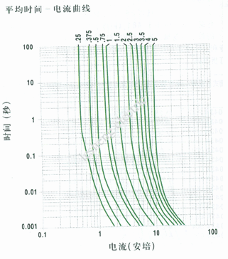 | 電流額定值百分比 | 在25℃時的斷路時間 |