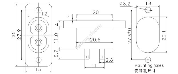 3. 絕緣電阻Insulation resistance: >100 MΩ/500Vdc